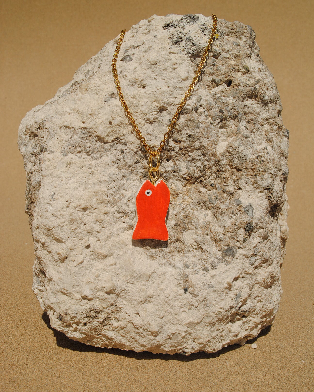 Narancssárga hal medál arany színű nemesacél láncon.