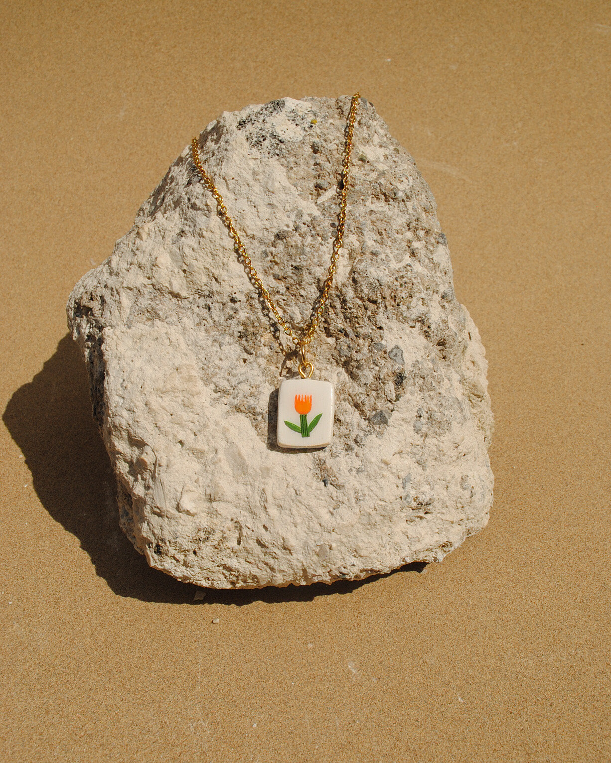 Narancs tulipán medál arany színű nemesacél láncon.