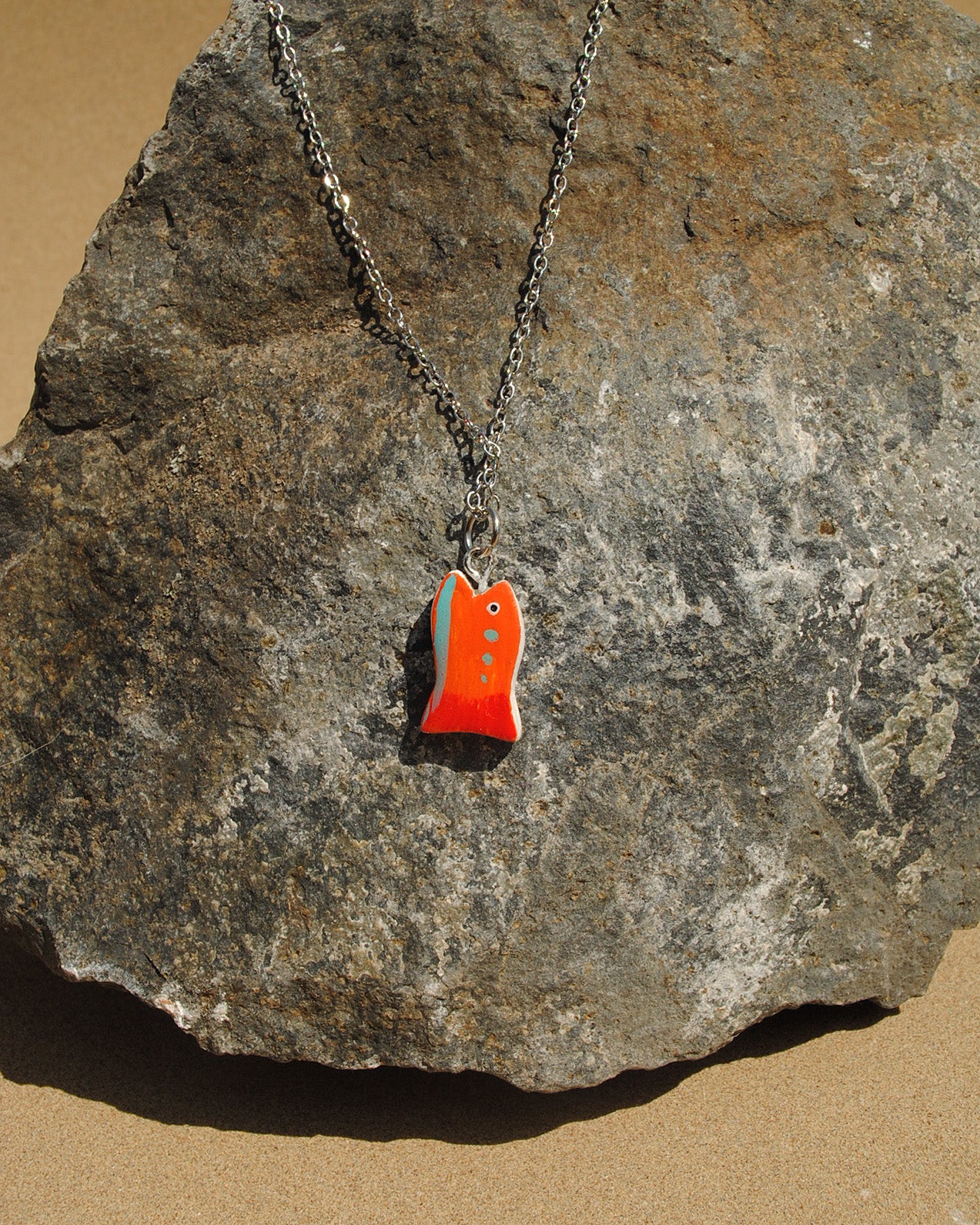 Narancs-türkiz hal medál ezüst színű nemesacél láncon.