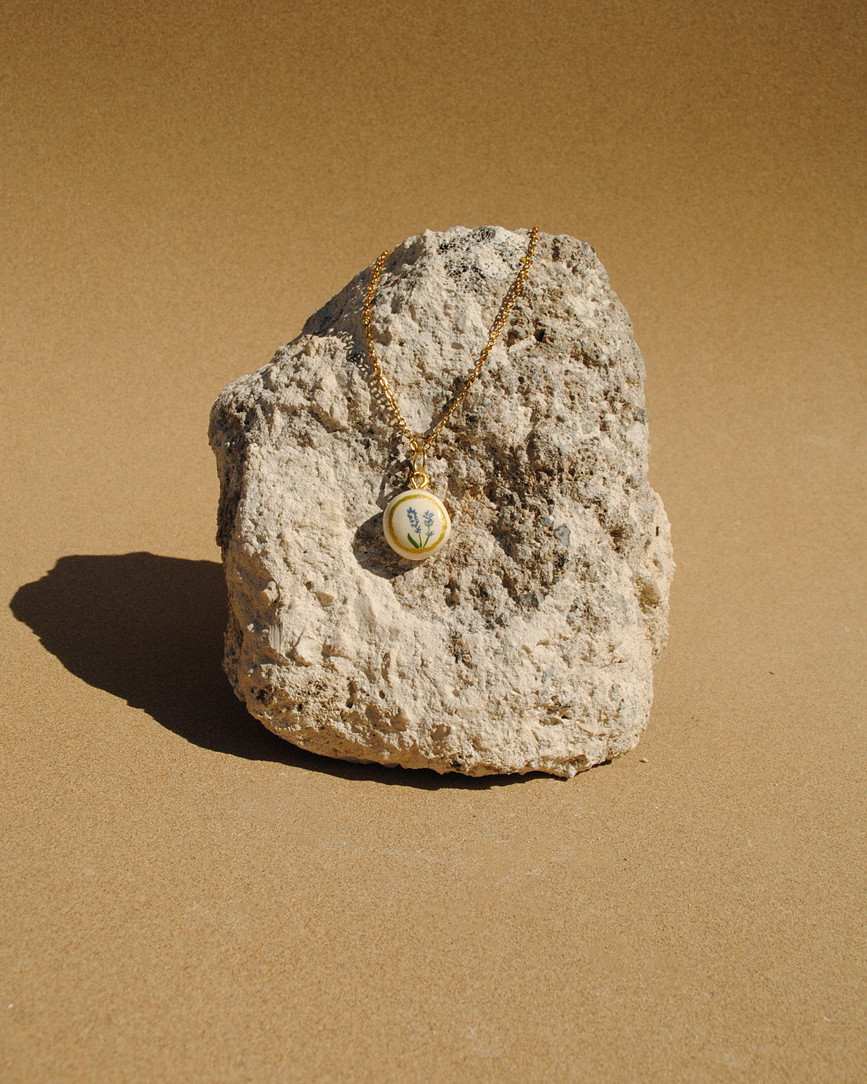 Levendula medál arany színű nemesacél láncon.