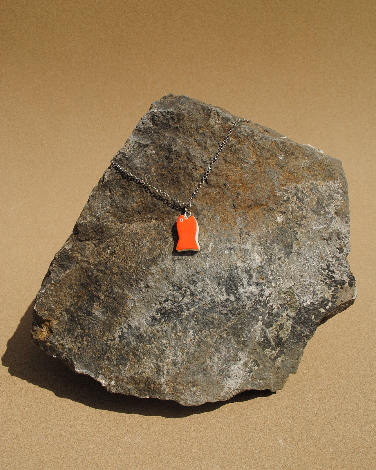Narancssárga hal medál ezüst színű nemesacél láncon.