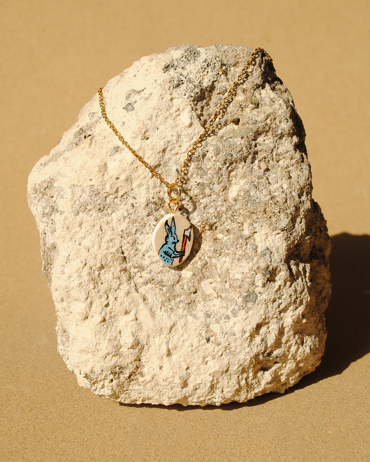Nyúl fejszével medál arany színű nemesacél láncon.