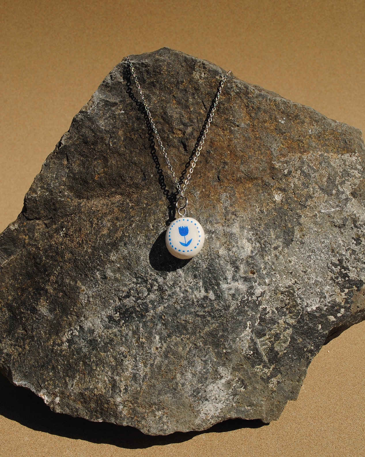 Kék tulipán medál ezüst színű nemesacél láncon.